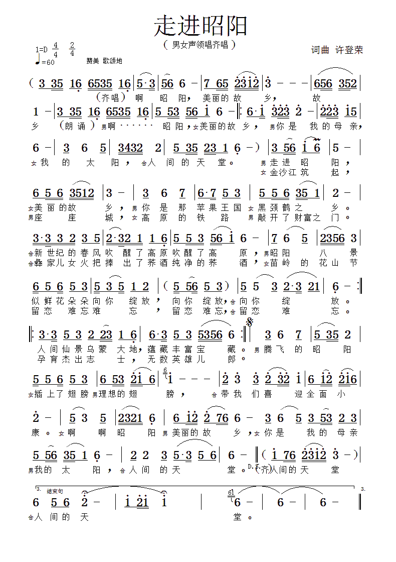 - [歌谱] 望儿楼 窦太真在昭阳自思自想