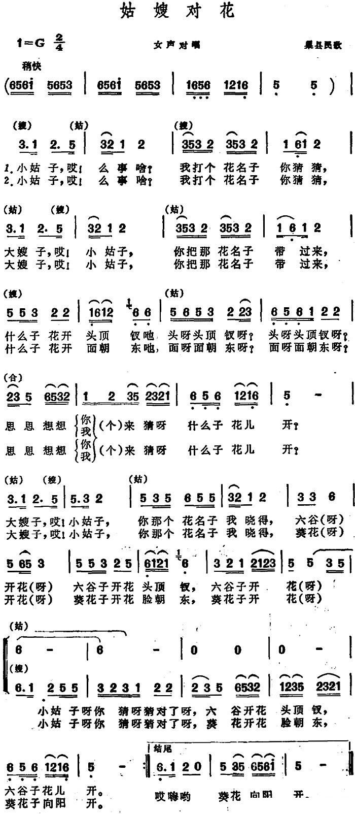 > 姑嫂对花 巢县民歌