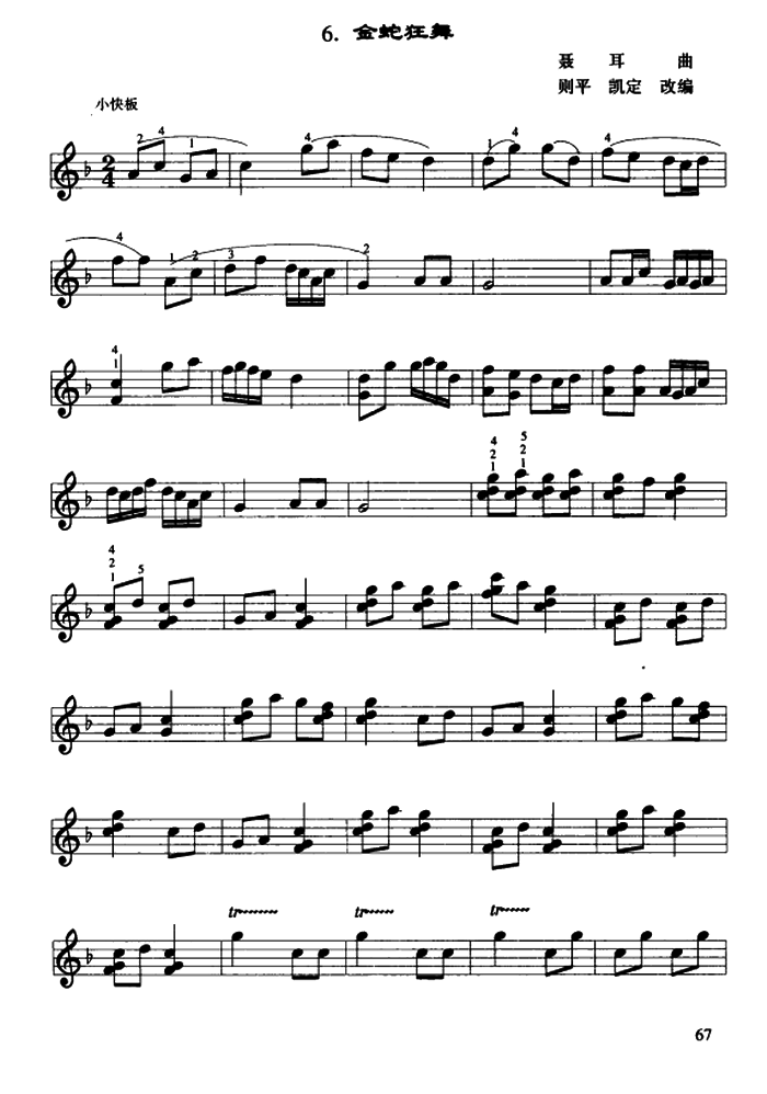 - [歌谱] 金蛇狂舞 选段 口风琴