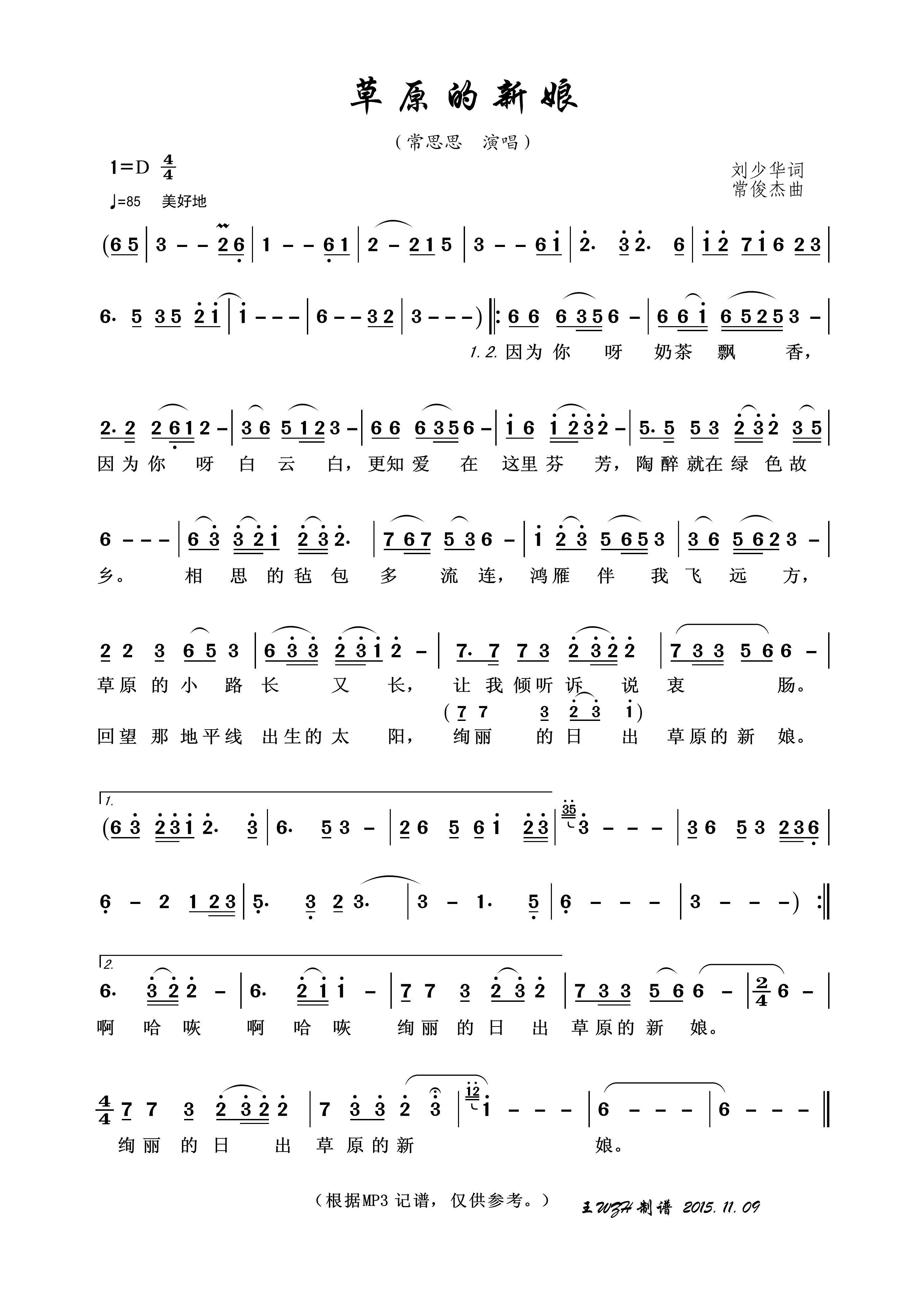 - [歌谱] 草原新娘