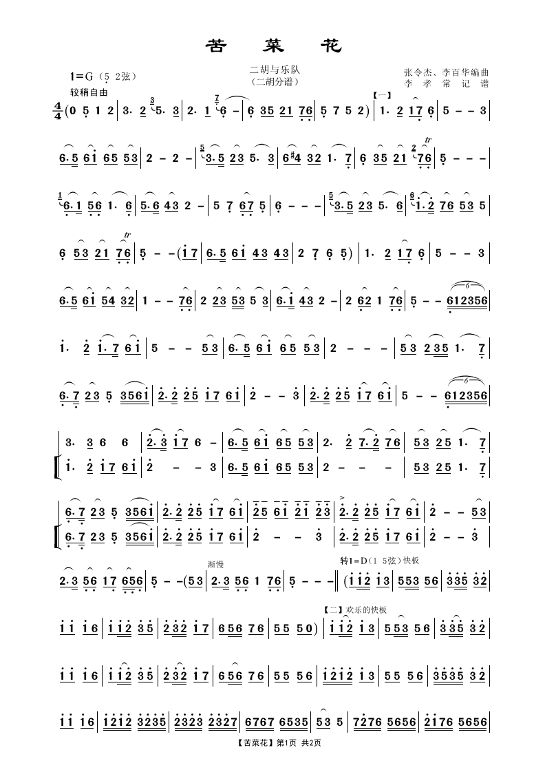 - [二胡谱,总谱] 江河水 二胡与乐队 2