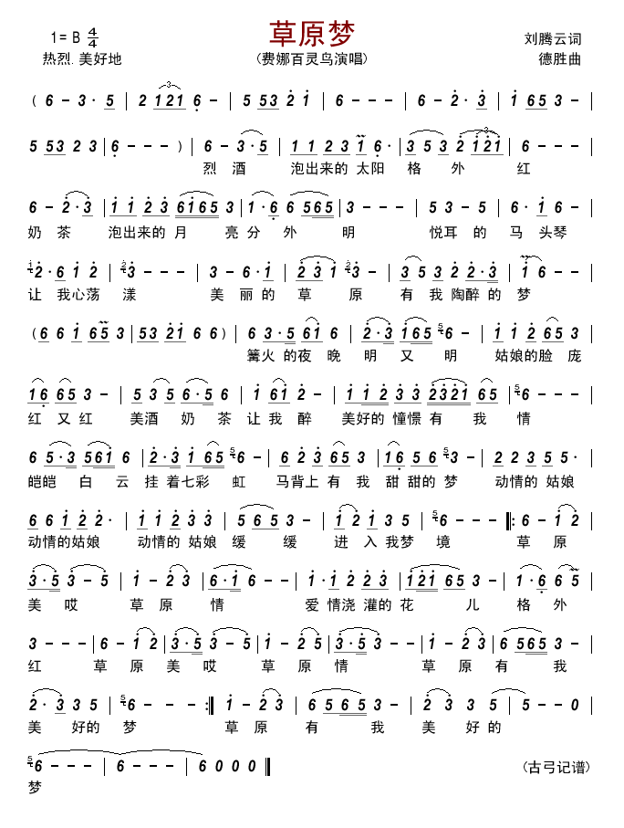 - [歌谱] 草原梦