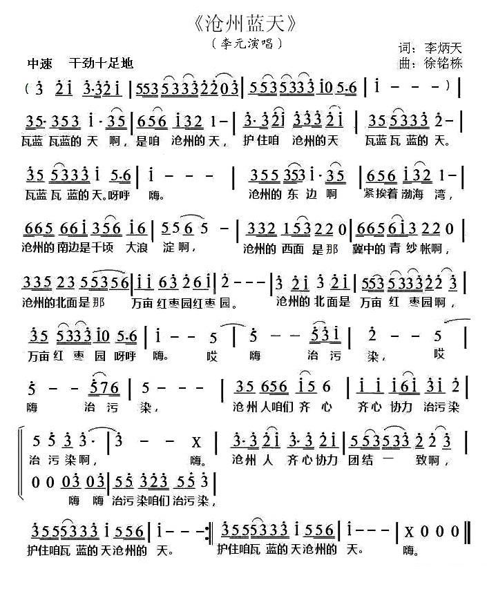 - [歌谱] 为沧州骄傲