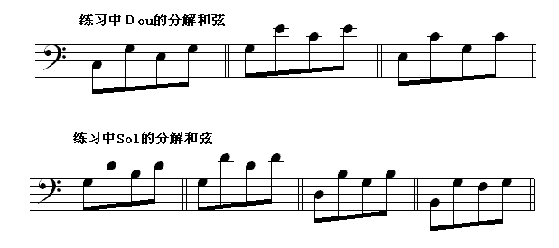 怎样看钢琴 第三节 识读低音部分常见的音乐进行 三 g d2音区常见音型