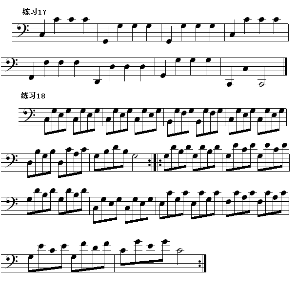 怎样看钢琴 第三节 识读低音部分常见的音乐进行 四 c c1八度内常见音型