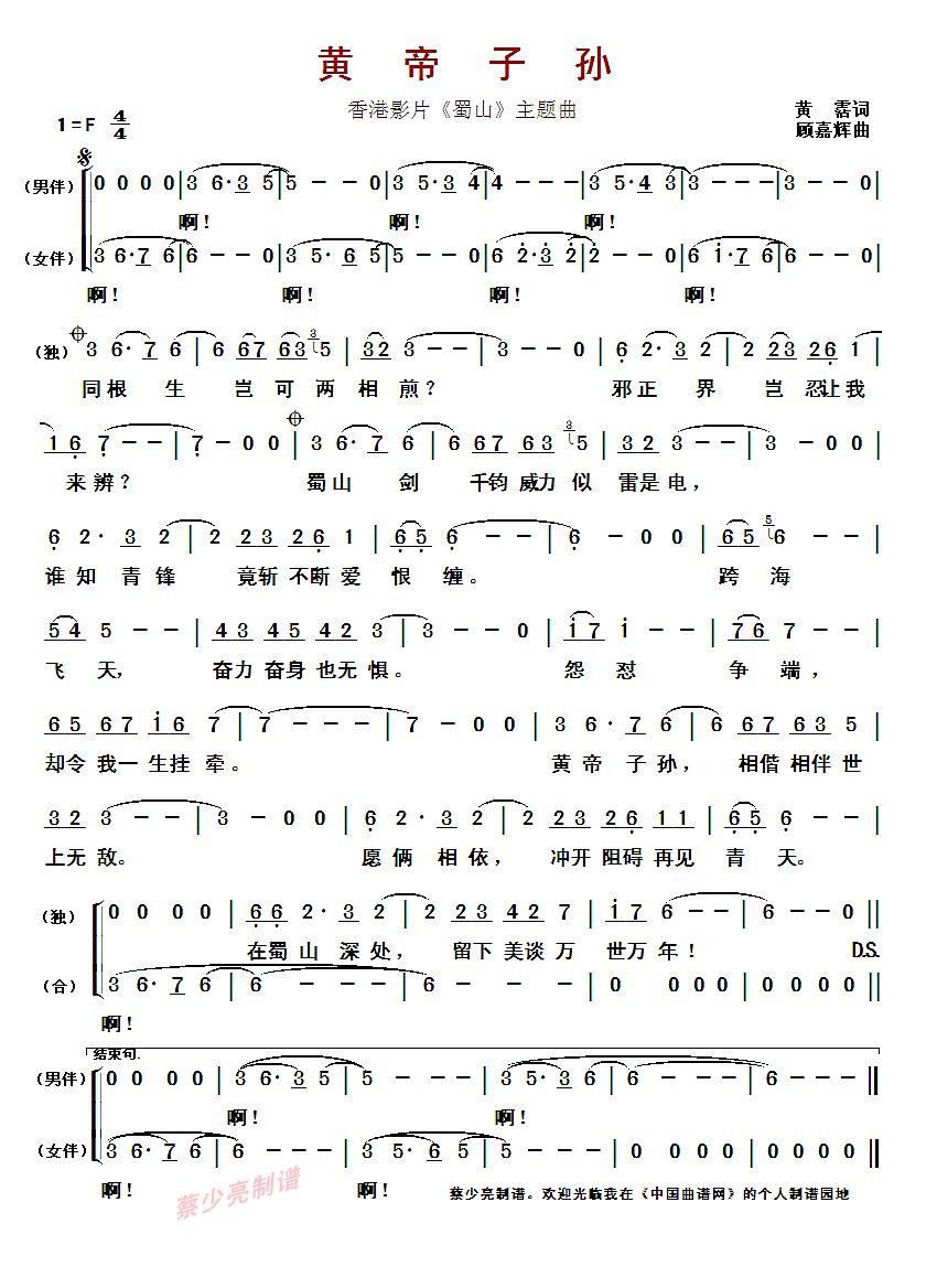 > ?黄帝子孙 香港影片 蜀山 主题曲