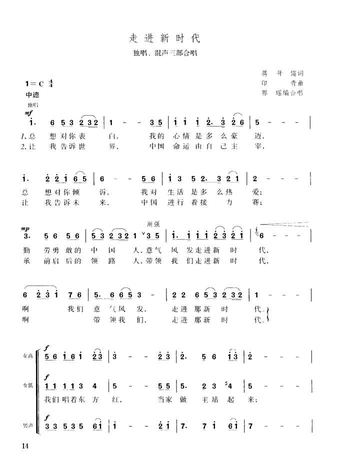 > 走进新时代 独唱 混声三部合唱