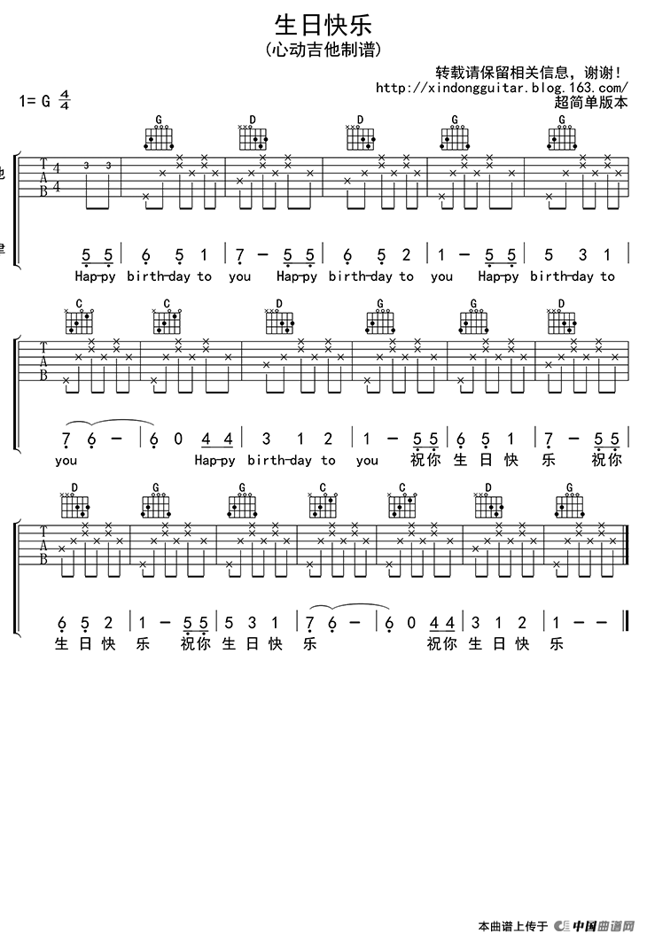 - [钢琴谱,吉他谱] 祝我生日快乐 吉他