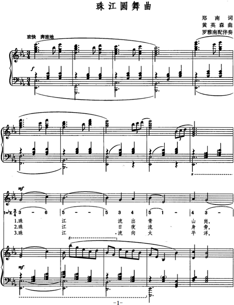 - [歌谱] 啊 珠江