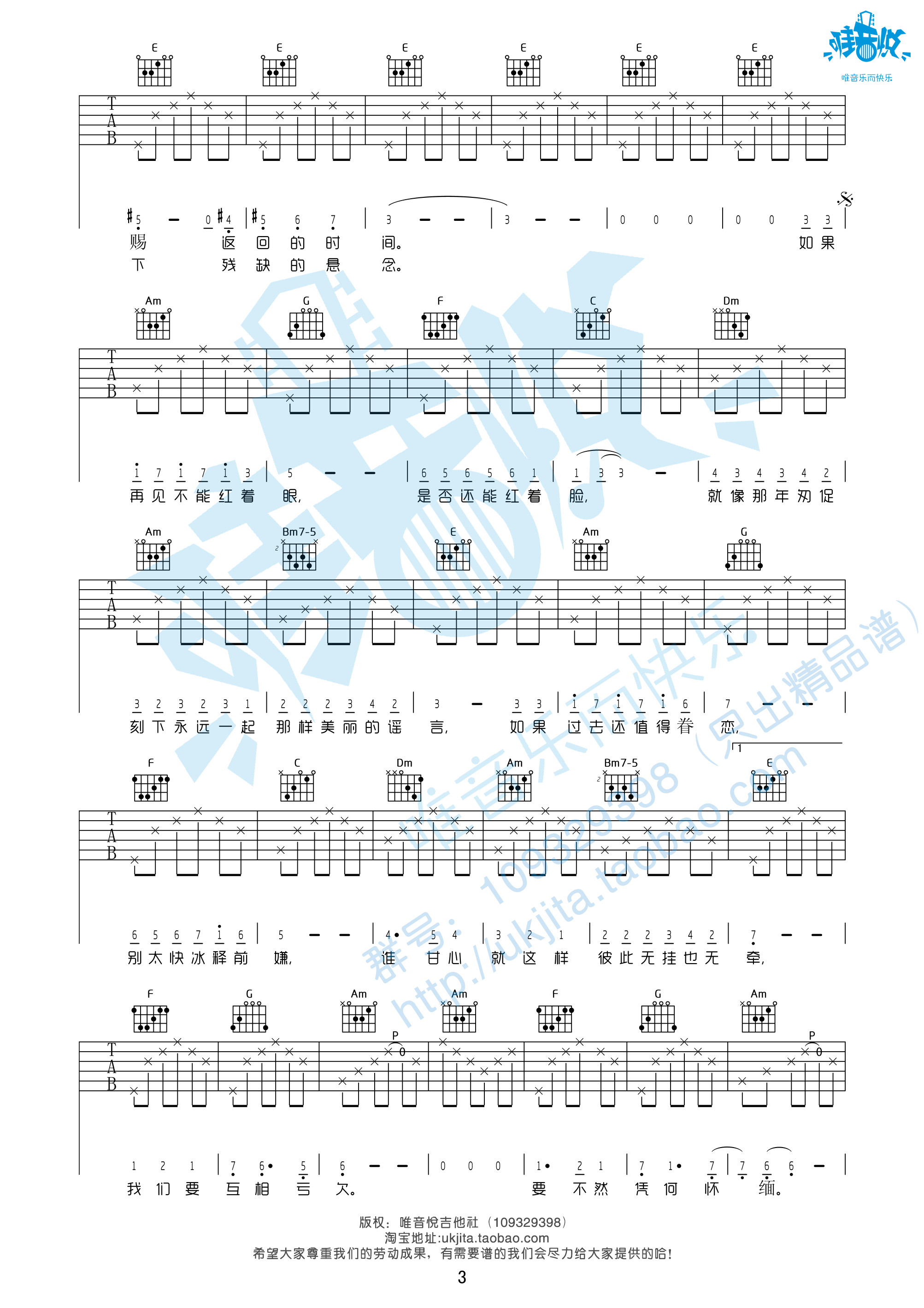 要高清谱的童鞋 可以关注微信或微博:唯音悦吉他社 也可以加QQ群109329398 (备注:吉他谱) 我们还会继续更多精品谱与教学视频给大家的 最近开始出教学视频 不懂的童鞋可以看我们的视频哦