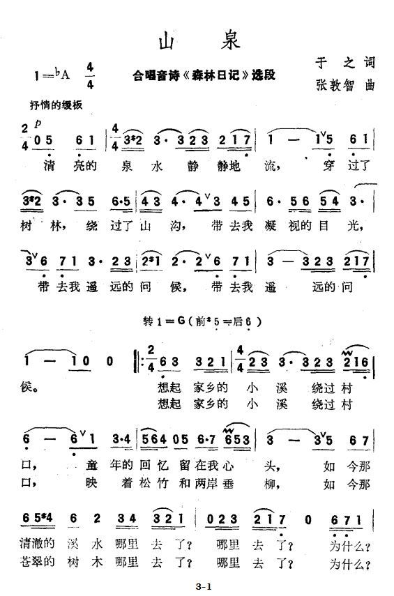 > 山泉 合唱音诗 森林日记 选段