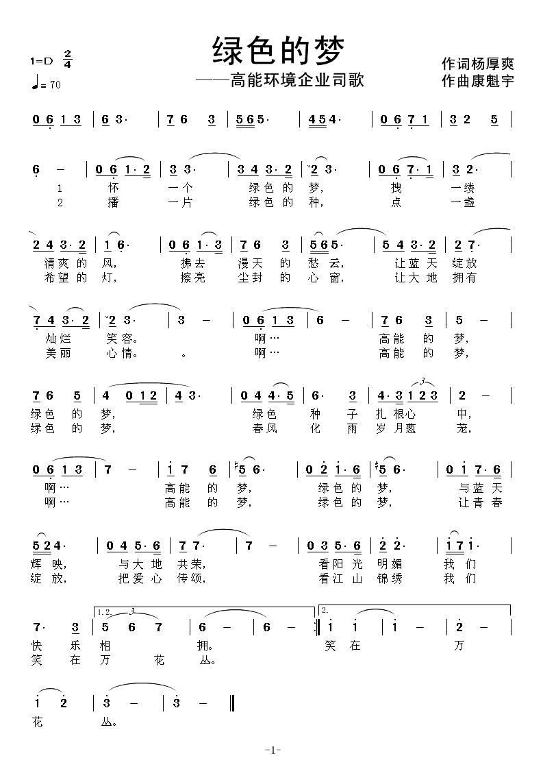 - [钢琴谱] 绿色的梦 献给地球一小时