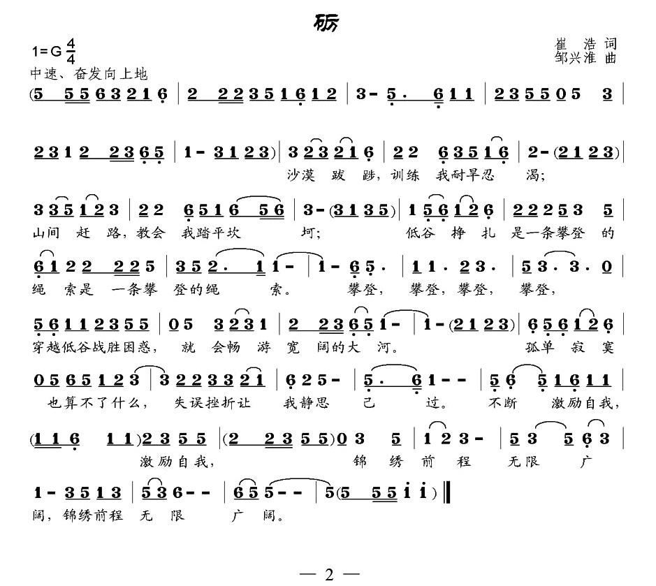 - [歌谱] 砺剑之歌 电视专题片 灞上砺剑 主题歌