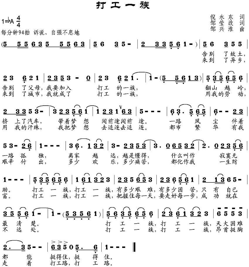- [歌谱] 打工一族