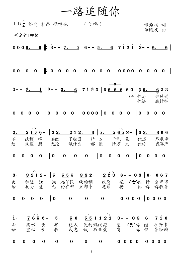 - [歌谱] 你一路走来