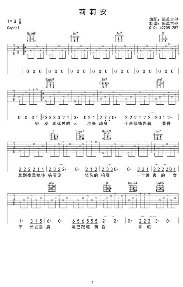 - [吉他谱] 莉莉安
