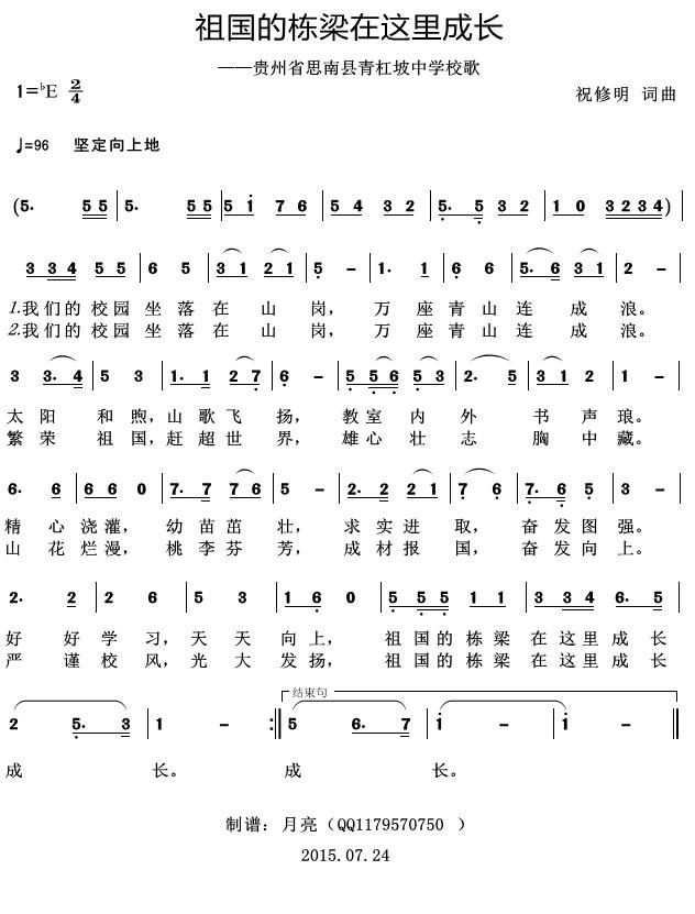 祖国的栋梁在这里成长 贵州省思南县青杠坡中学校歌