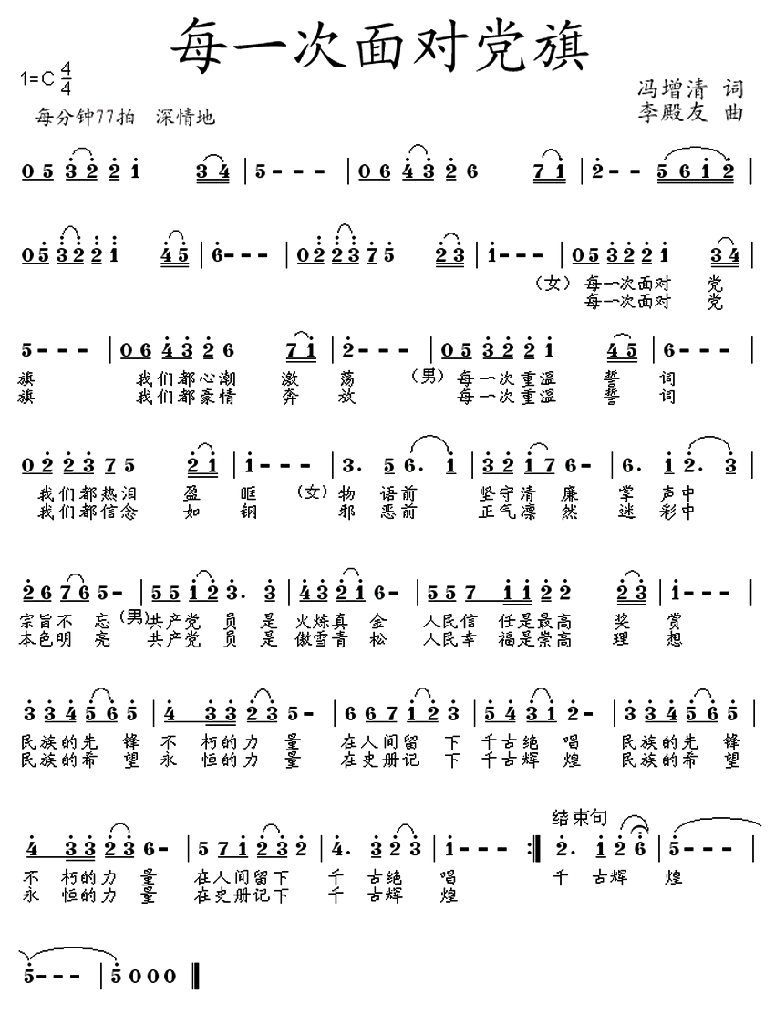 - [歌谱] 面对鲜红的党旗