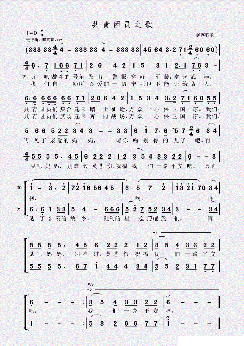 共青团员之歌 独唱 合唱 前苏联