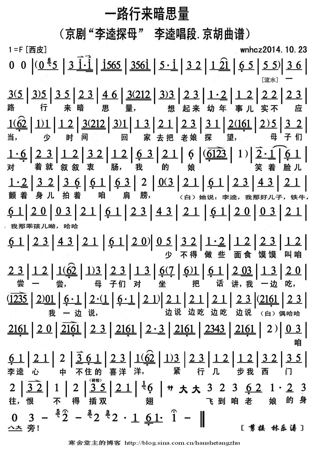 一路行来暗思量 李逵探母 李逵唱段 京胡谱