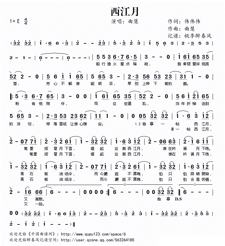 - [歌谱] 西江月