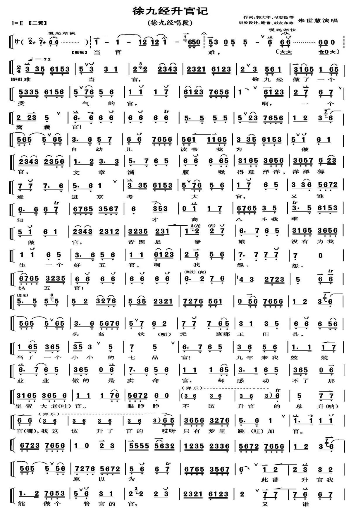 - [歌谱] 徐九经升官记 当官难