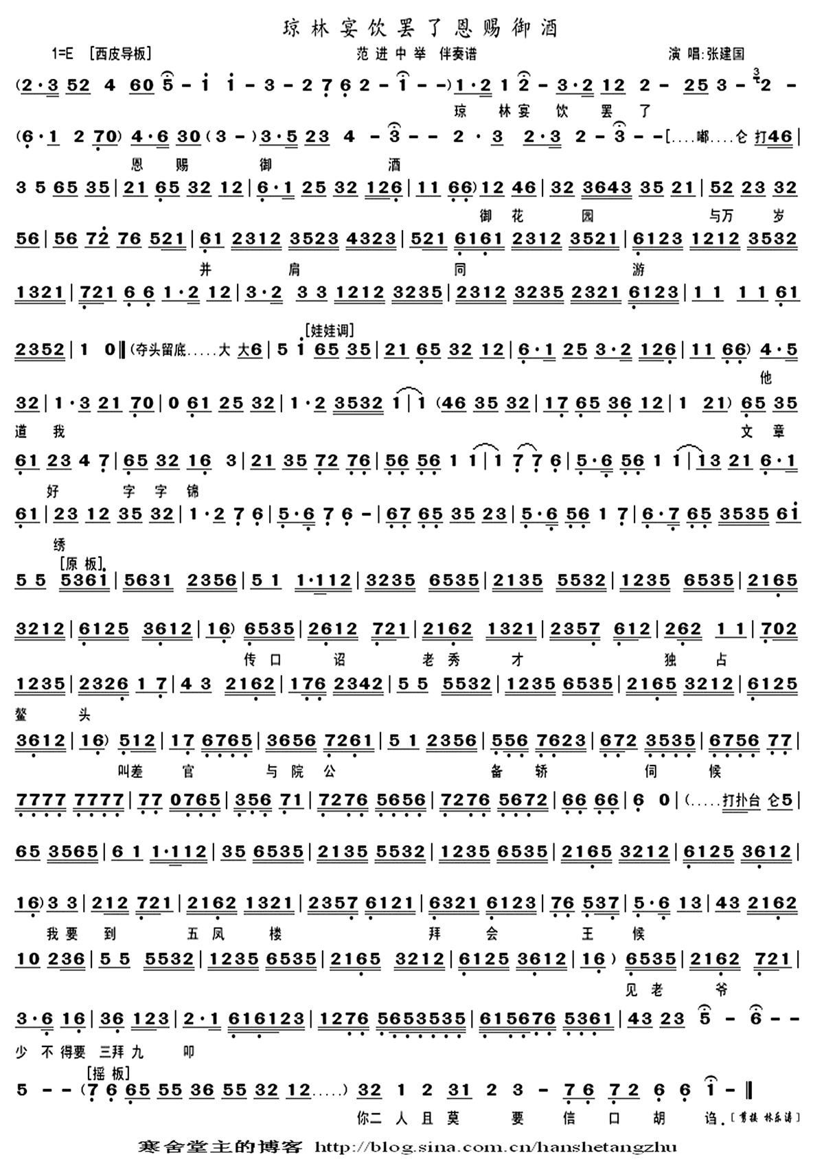 琼林晏饮罢了恩赐御酒 范进中举 选段 琴谱