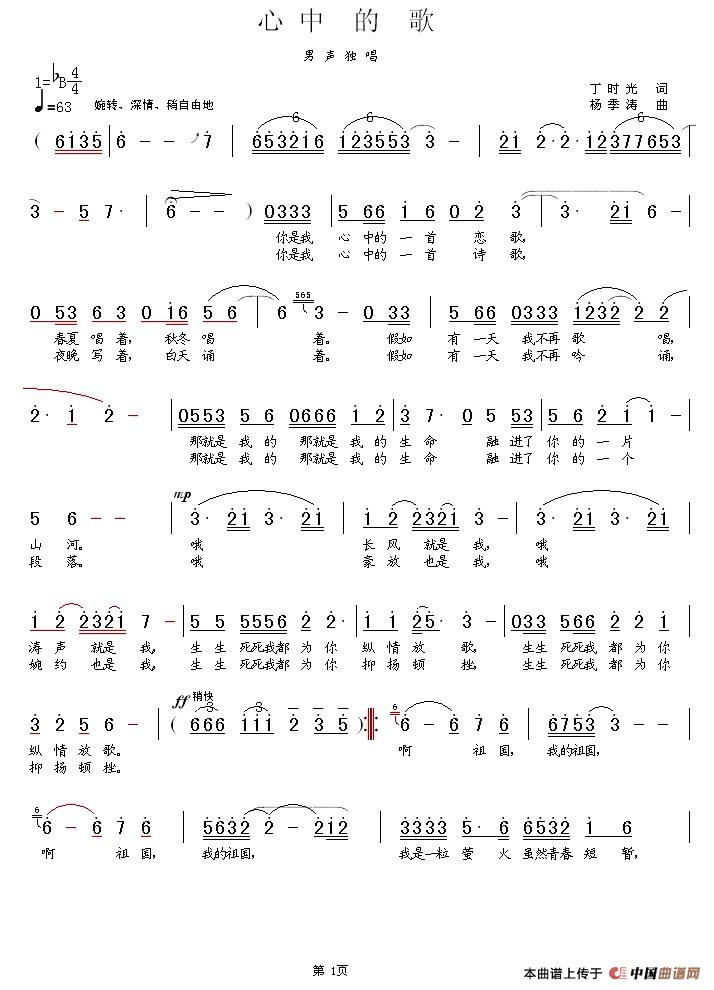- [歌谱] 心中的歌
