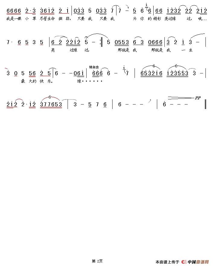 - [歌谱] 心中的歌 小青
