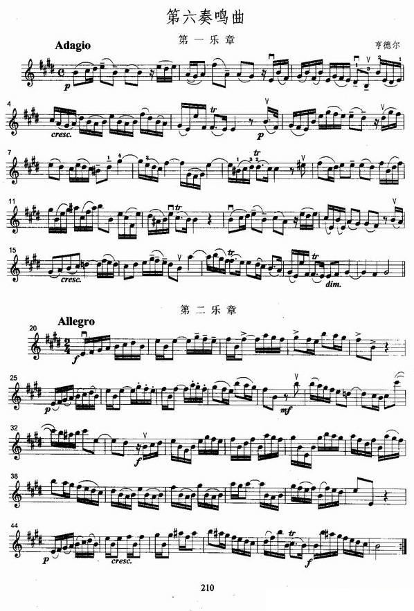 享德尔第六奏鸣曲第一第二乐章