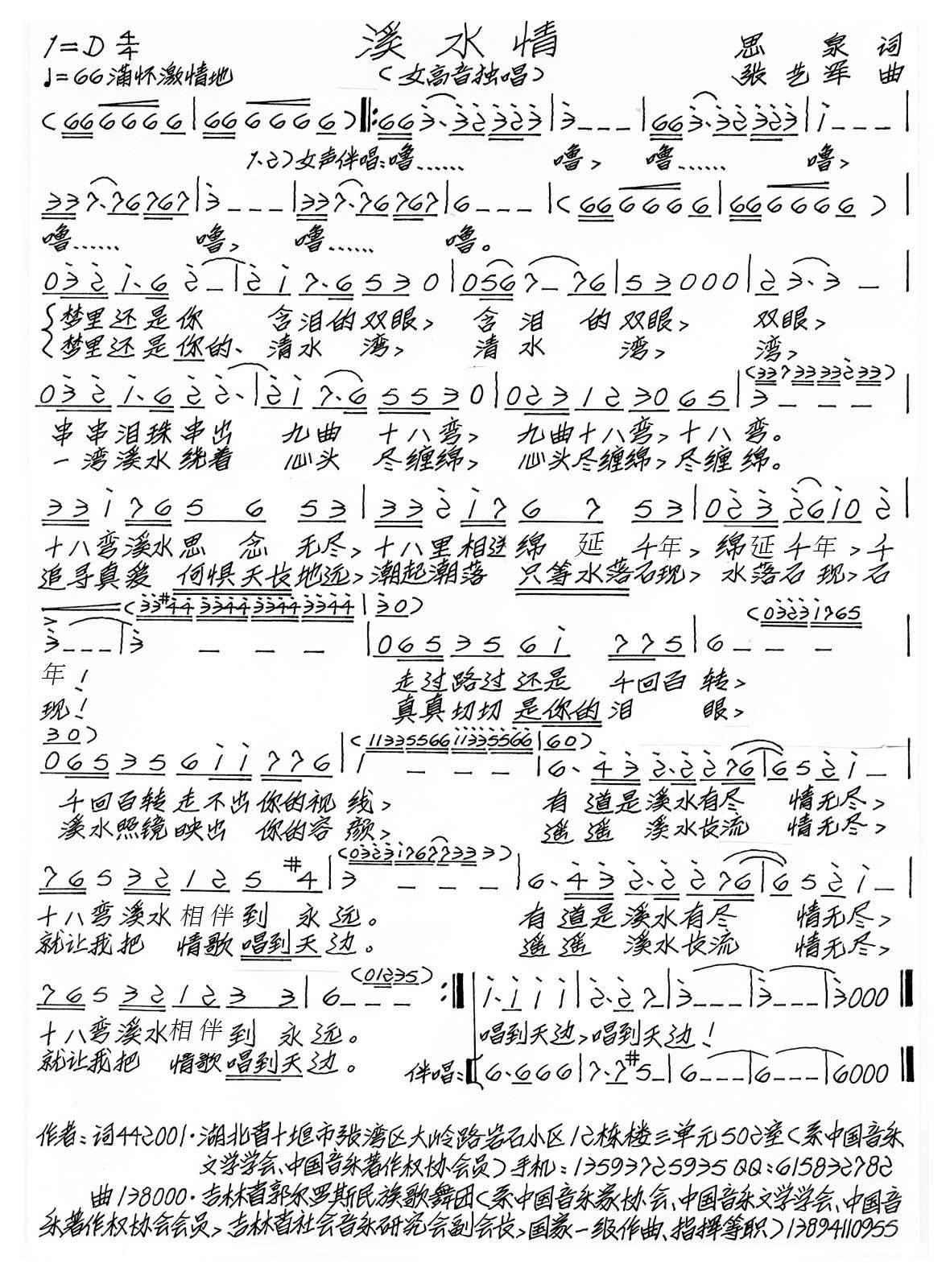 - [歌谱] 溪水吟