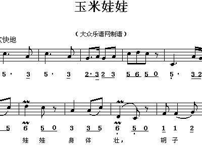 - [歌谱] 玉米娃娃 低幼歌曲 中班用