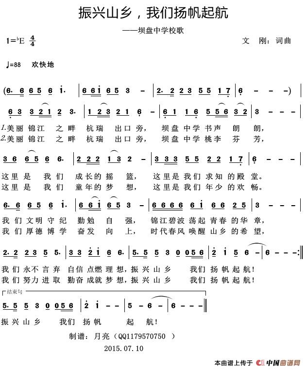 > 振兴山乡 我们扬帆起航 坝盘中学校歌