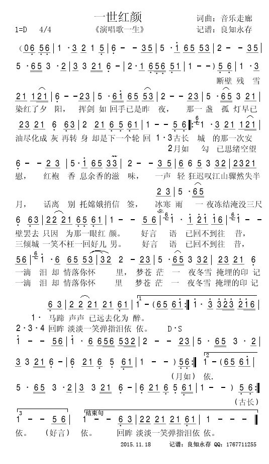 - [歌谱] 一世红颜