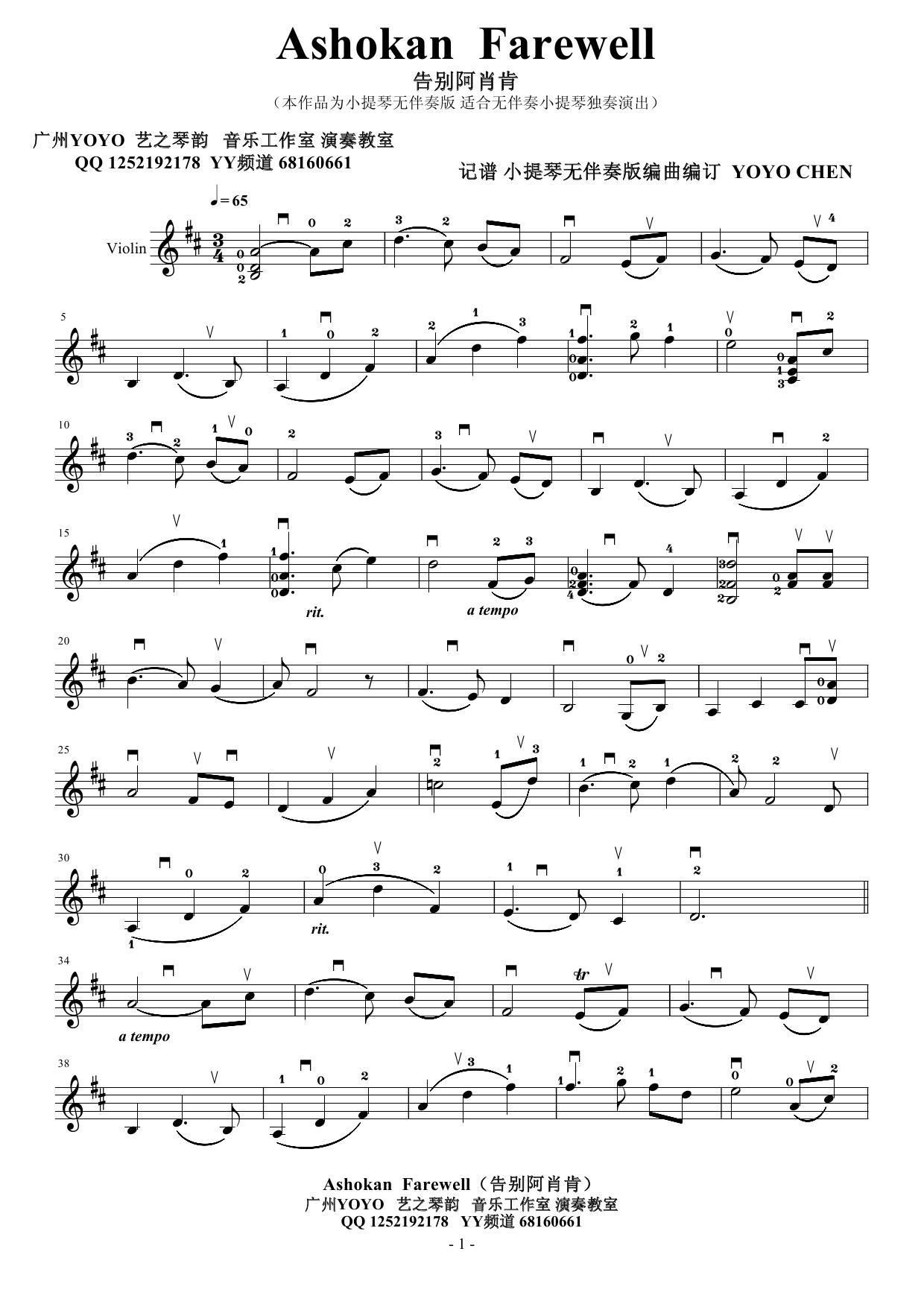 告别阿肖肯 小提琴无伴奏独奏演出谱