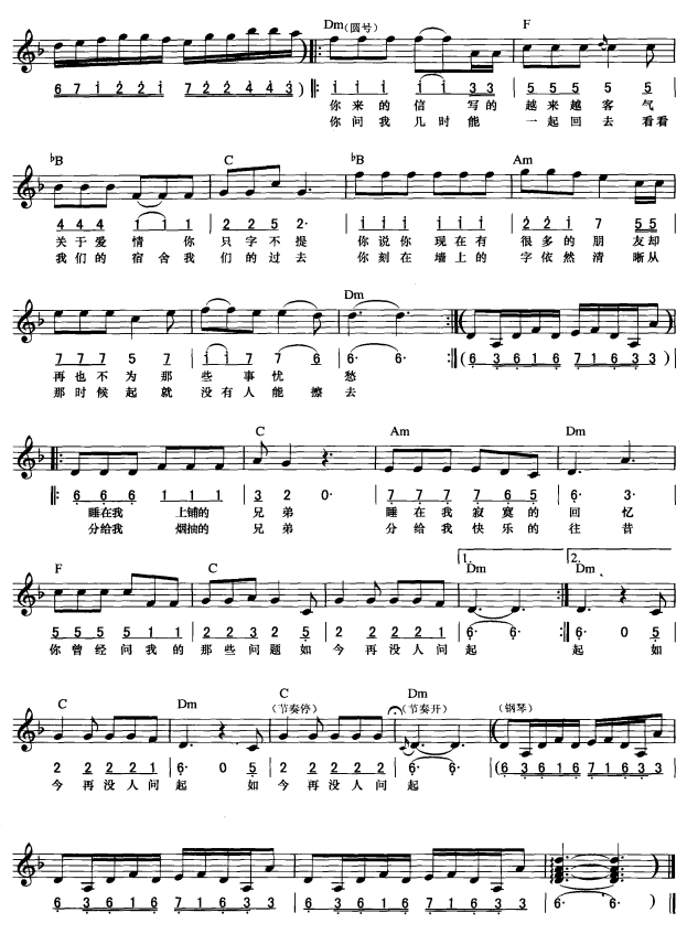 睡在我上铺的兄弟 线简混排弹唱谱