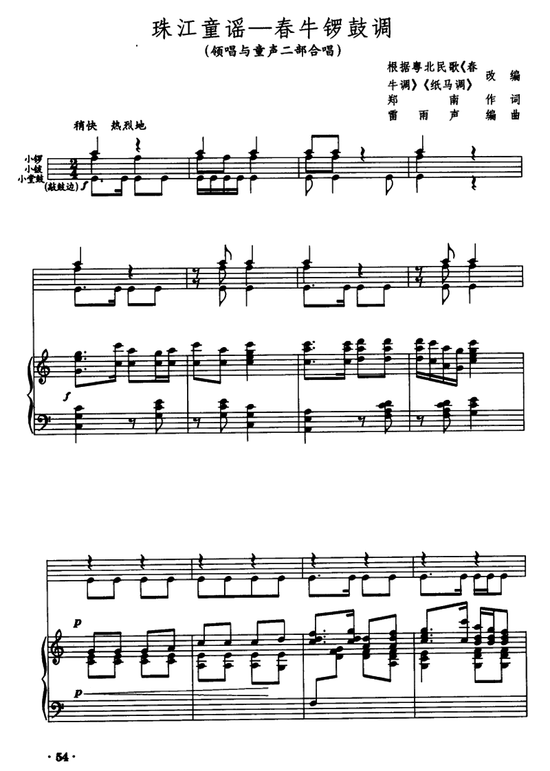 珠江童谣――春牛锣鼓调 领唱与童声二部合唱