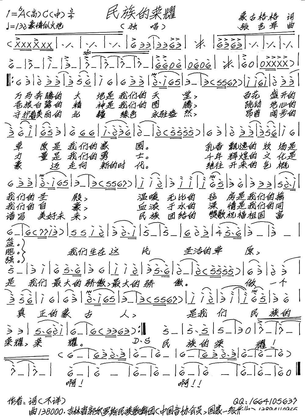 - [歌谱] 我的蒙古高原