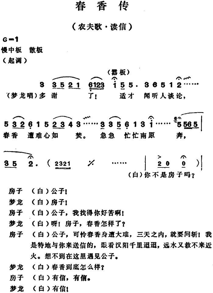 来时除岁正严冬 龙凤花烛 读信 唱段