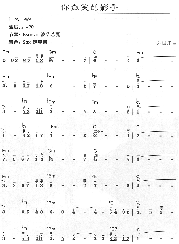 - [歌谱] 你微笑的影子