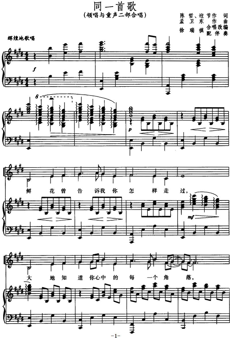 > 同一首歌 领唱与童声二部合唱 徐瑞祺编合唱版