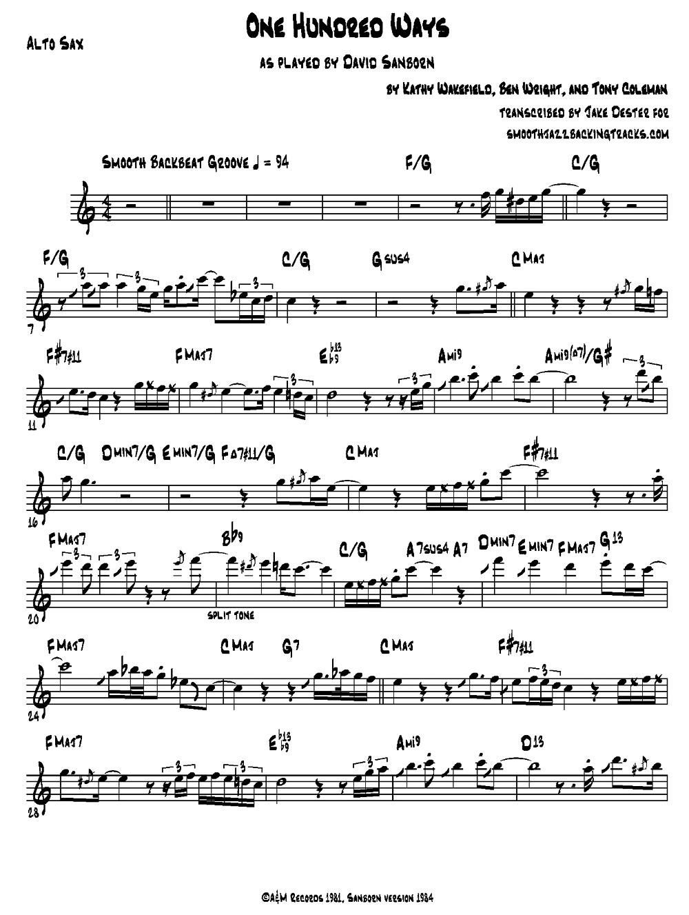> One Hundred Ways 中音萨克斯
