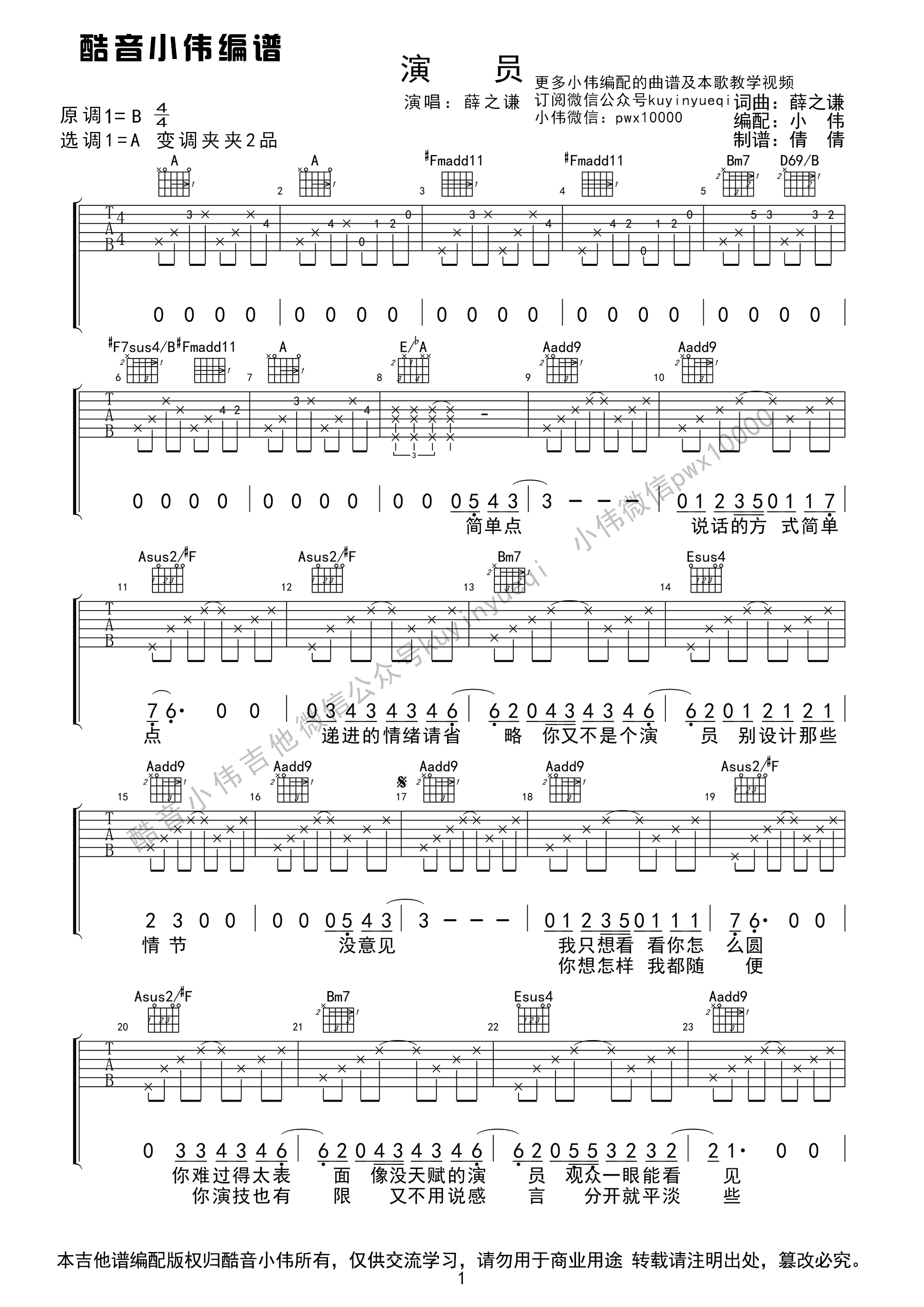 演员 薛之谦原版A调 及教学视频 酷音小伟编配