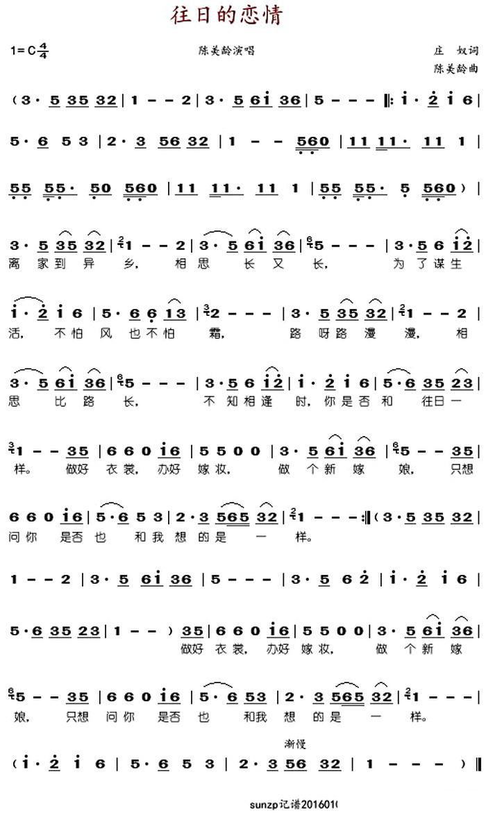 - [歌谱] 往日的恋情 电视剧 乱世儿女 插曲