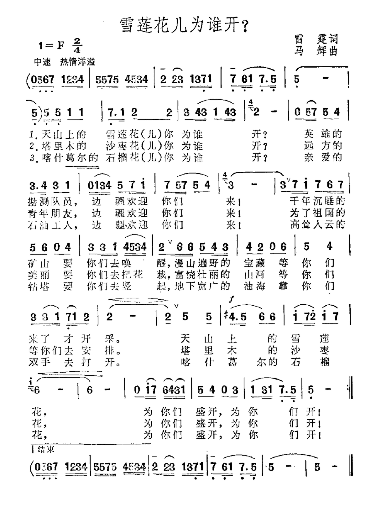 - [歌谱] 雪莲花为你开放