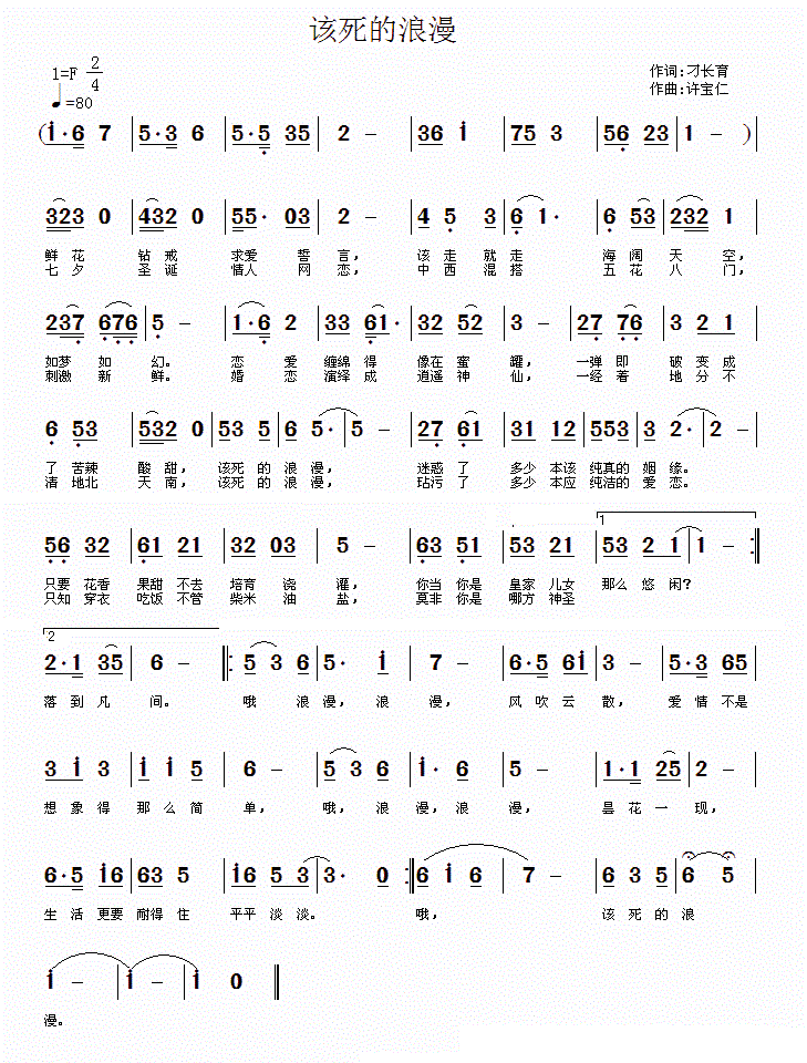 - [钢琴谱,歌谱,吉他谱] 该死的温柔