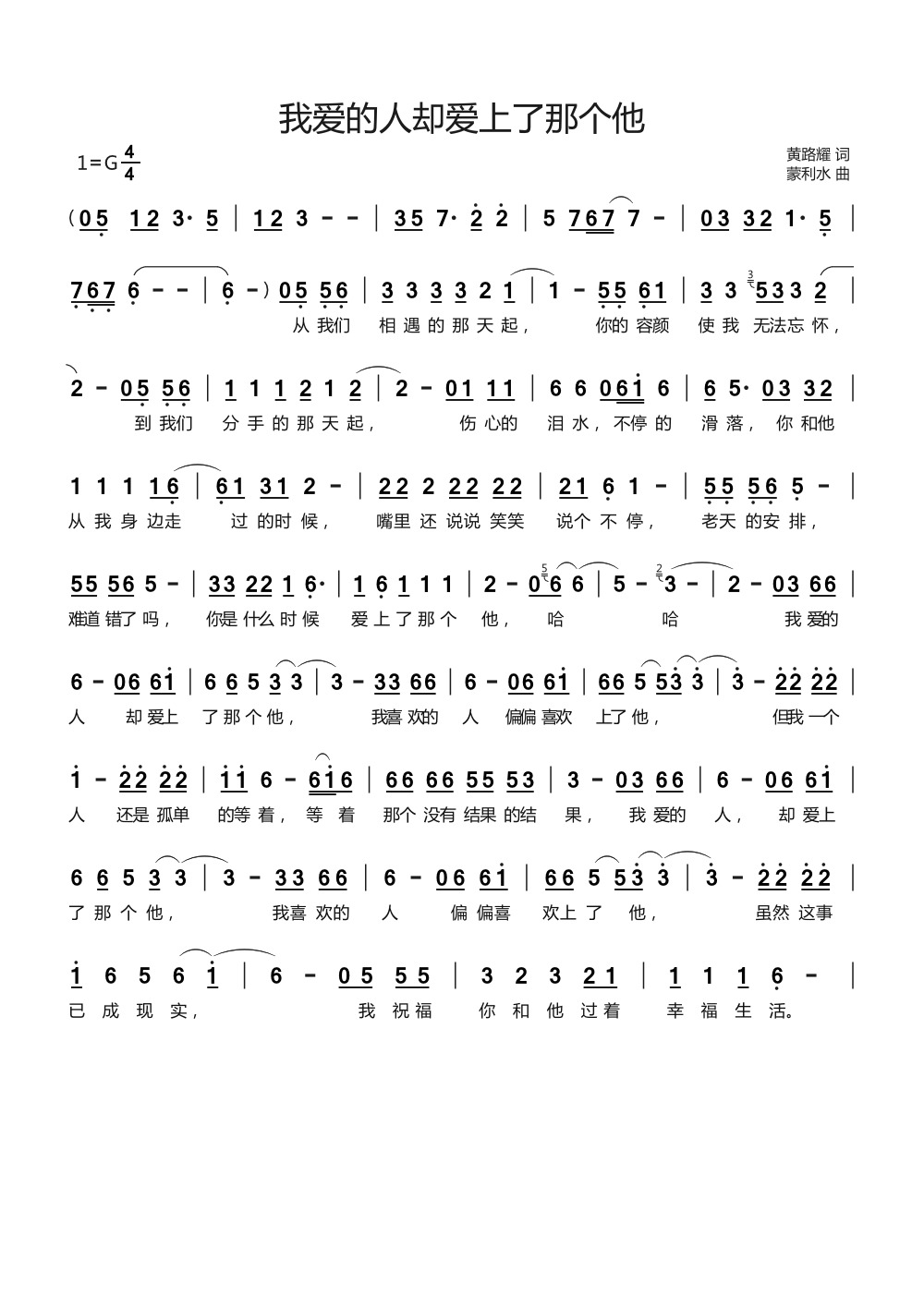 - [歌谱] 我的那个他
