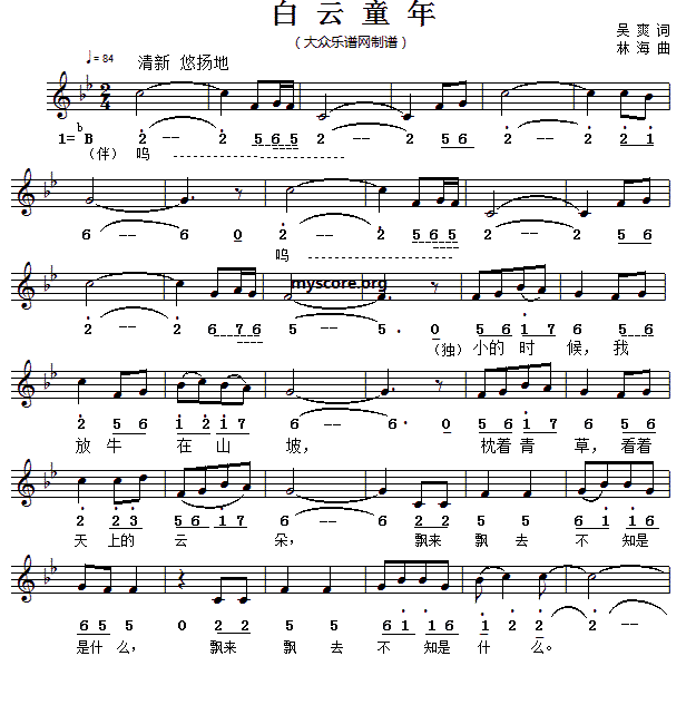 - [电子琴谱,钢琴谱,歌谱,吉他谱] 白云
