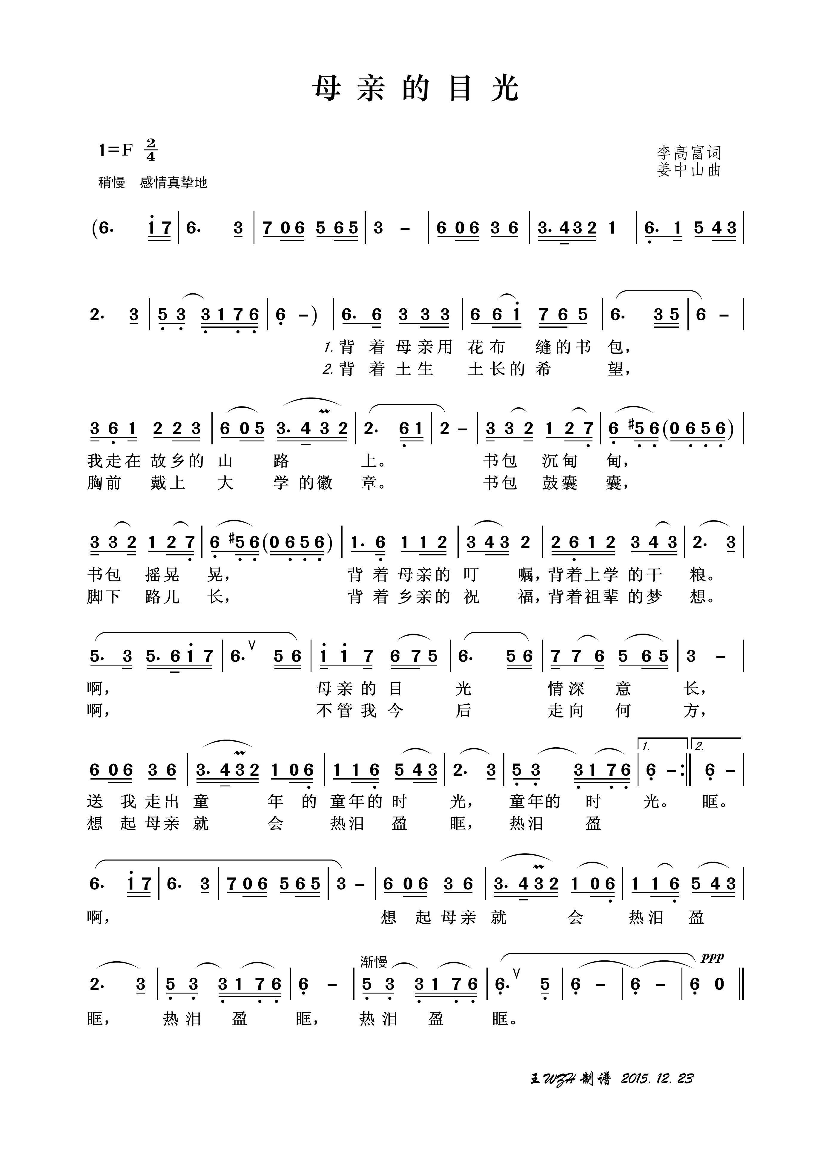 - [歌谱] 母亲的目光 献给我亲爱的祖国