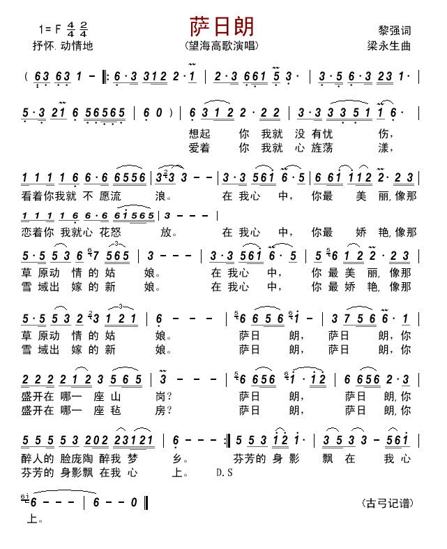 - [歌谱] 一生为你守候 飘飘 望海高歌